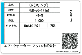 - Oリングの入ったポリエチレン袋の外装面にラベルが貼ってありますので、ご確認の上受け入れをお願いします。