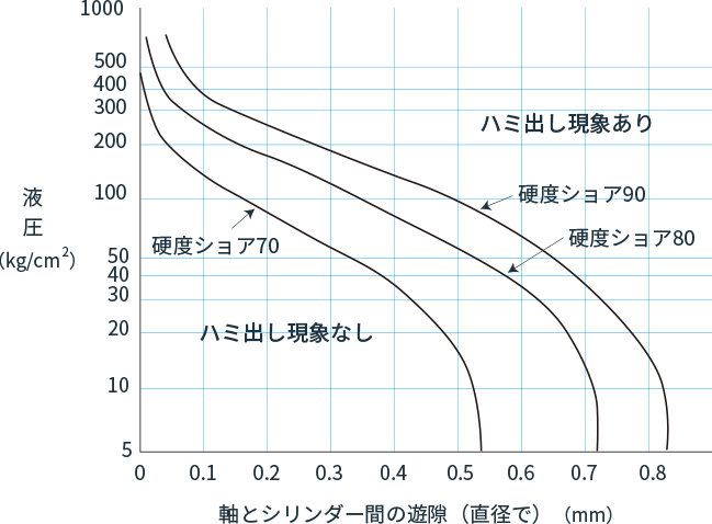油圧とOリングのゴム硬度とハミ出しを起こす遊隙の限界