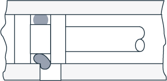 Oリングは、低圧の状態ではツブシシロにより密封し、圧力が高くなるにつれて変形し、その緊迫力を増して密封します。高圧になると図6-3のようにOリングは、ピストンとシリンダおよびロッドとスリーブとのスキマにハミ出しを生じ、損傷の原因となります。従ってこのスキマは、できるだけ小さくなるよう設計してください。このハミ出しを防止するためにはバックアップリングの併用が有効です。