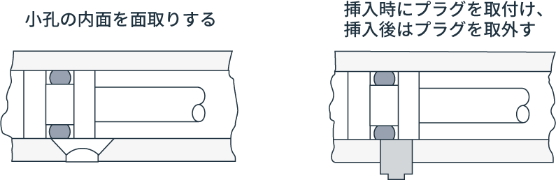 - ピストンをシリンダーに挿入するときには、図9のように小孔のエッジでOリングをキズつけてしまうことがあります。