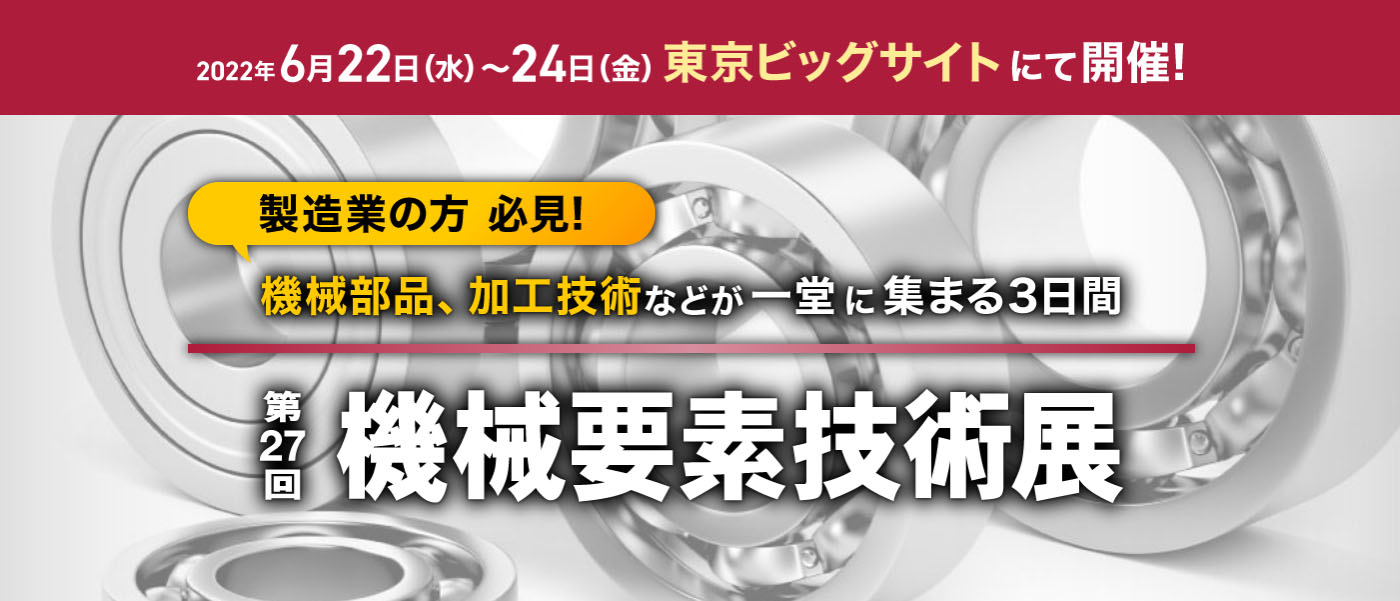 来る6月22日(水)~24日(金) 「東京ビッグサイト」にて開催されます『第27回機械技術要素展』に約2年ぶりに出展いたします。