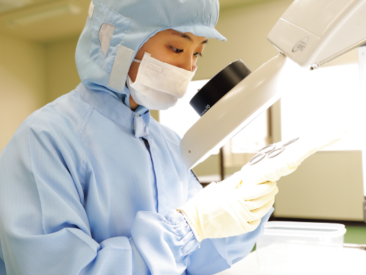 エコーパーフロは混練、成形から洗浄、包装までの作業を一貫してクリーンルーム内で行っております。